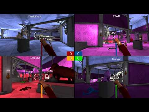 I just picked up a game called Screencheat. It's an arena-style FPS, with a twist. Every character is invisible, and you can see everyone's screens - you have to screencheat to find and kill them.